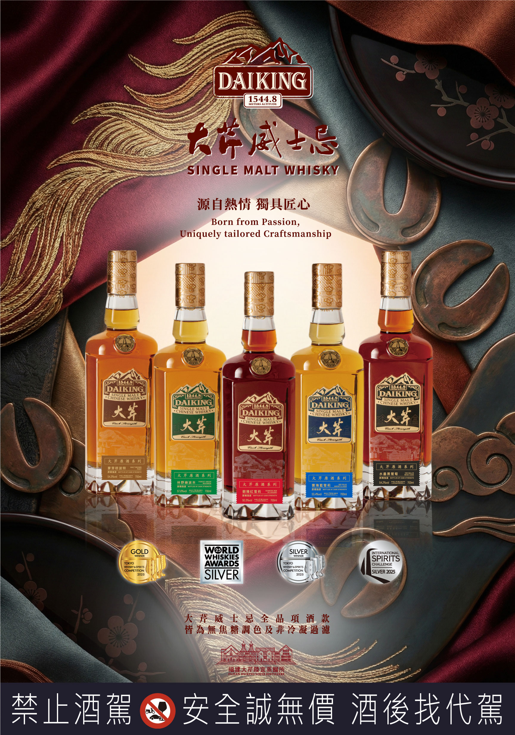 2021年大芹威士忌首次在國際舞台上亮相,憑藉獨特的風味擄獲國際威士忌專家的心,不僅連續獲得TWSC東京威士忌與烈酒競賽「中國最佳威士忌」殊榮,也在英國WWA威士忌大賽中多次榮獲「類別冠軍」,在短短4年多累計近百面獎牌殊榮,為中國單一麥芽威士忌開創了新的傳承。